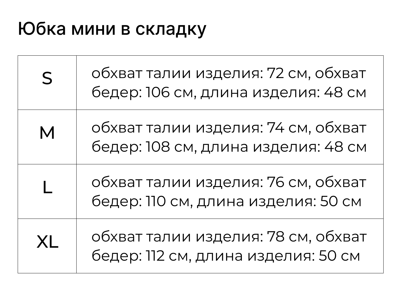 Крой А-силуэта со складками. Складка застрочена по линии талии на 5 см. Застежка на скрытую молнию сбоку. Средняя посадка. Без подклада.